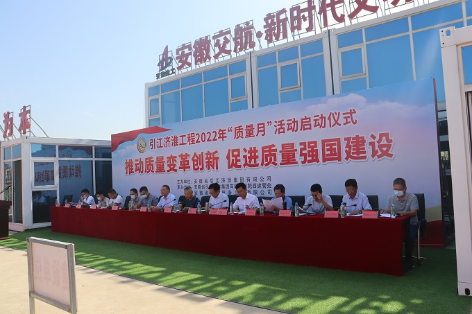 9月6日上午,引江濟(jì)淮工程2022年“質(zhì)量月”活動(dòng)啟動(dòng)儀式在安徽交航公司引江濟(jì)淮項(xiàng)目新時(shí)代文明實(shí)踐點(diǎn)成功舉辦。省引江濟(jì)淮集團(tuán)黨委委員、副總經(jīng)理陳圣剛,安徽交航公司黨委副書記、總經(jīng)理杜海峰出席會(huì)議。省引江濟(jì)淮集團(tuán)質(zhì)量安全管理部部長錢建輝和所屬各建管處、子分公司負(fù)責(zé)人,各參建單位項(xiàng)目代表和一線隊(duì)伍代表參加儀式。