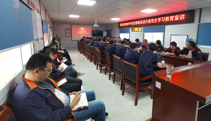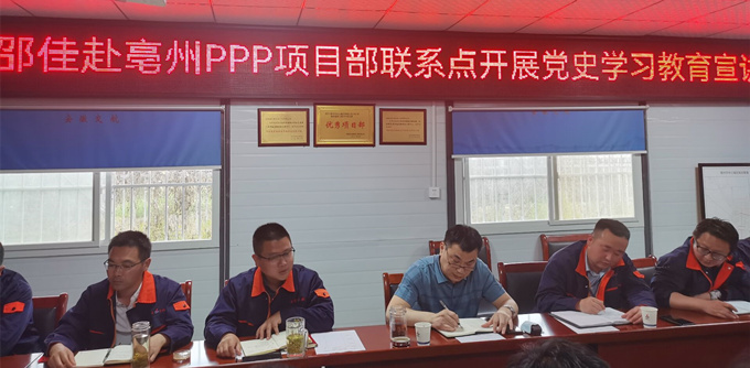 5月13日,公司黨委委員、副總經(jīng)理邵佳赴亳州PPP項(xiàng)目黨支部聯(lián)系點(diǎn)開展黨史學(xué)習(xí)教育宣講,蒙城項(xiàng)目部分黨員、項(xiàng)目部全體人員參加宣講會(huì)。