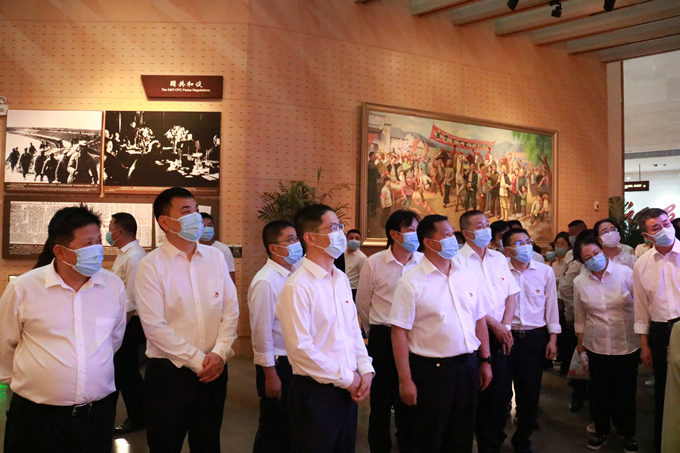 為慶祝中國(guó)共產(chǎn)黨成立100周年,貫徹落實(shí)黨史學(xué)習(xí)教育工作要求,5月11日下午,安徽交航機(jī)關(guān)黨支部、引江濟(jì)淮項(xiàng)目黨支部、聯(lián)合開展黨史學(xué)習(xí)教育主題黨日活動(dòng)。公司領(lǐng)導(dǎo)班子成員,機(jī)關(guān)全體黨員、引江濟(jì)淮項(xiàng)目全體黨員以及職工群眾共120余人前往渡江戰(zhàn)役紀(jì)念館,重溫入黨誓詞,緬懷革命先烈豐功偉績(jī),聆聽黨委書記、董事長(zhǎng)、總經(jīng)理方申柱講黨課。