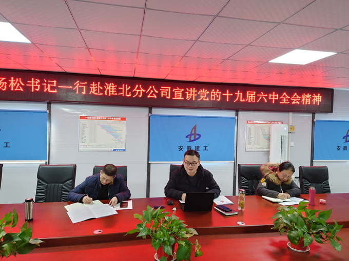 12月28日,公司黨委委員、紀委書記楊松赴淮北分公司宣講黨的十九屆六中全會精神?;幢狈止救w黨員及各項目負責人參加會議。