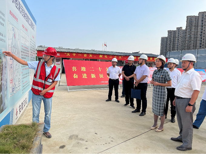 丁金穎一行在項目施工現(xiàn)場實地查看了項目建設(shè)情況,認(rèn)真聽取了關(guān)于工程概況、施工進(jìn)度及安全生產(chǎn)工作情況的匯報,并現(xiàn)場就工程安全、質(zhì)量等方面提供指導(dǎo)意見。