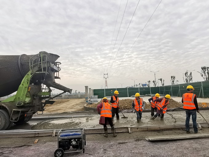 在保證安全質(zhì)量的前提下,項(xiàng)目部搶工期、抓安全,嚴(yán)格按照施工規(guī)范和設(shè)計(jì)圖紙要求,加班加點(diǎn)。圓滿(mǎn)完成10月16日2號(hào)廠(chǎng)房基礎(chǔ)所有承臺(tái)澆筑的既定任務(wù),為上部結(jié)構(gòu)施工打下了良好基礎(chǔ)。同時(shí),園區(qū)的道路混凝土施工也在緊鑼密鼓的進(jìn)行中,整體施工局面全面鋪展。