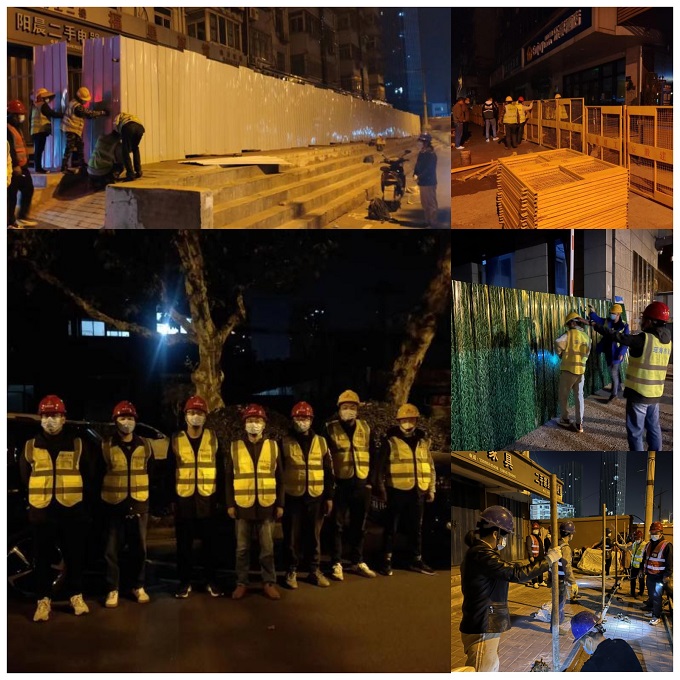 2022年10月19日晚21時(shí)許,安徽交航公司位于合肥市瑤海區(qū)的兩個(gè)項(xiàng)目“瑤海區(qū)板橋河初期雨水徑流污染控制工程項(xiàng)目”和“瑤海區(qū)排水系統(tǒng)雨污混接改造工程二期項(xiàng)目”接到建設(shè)單位通知,配合區(qū)政府在瑤海全區(qū)進(jìn)行強(qiáng)化疫情防控有關(guān)措施,要求項(xiàng)目部立即組織人員、物資對(duì)屬地小區(qū)開(kāi)展應(yīng)急封控工作。項(xiàng)目部積極響應(yīng)政府號(hào)召,立即組織精干人員,成立疫情防控應(yīng)急小組,迅速調(diào)撥材料、安排車(chē)輛。23時(shí)30分,接到具體任務(wù)后,項(xiàng)目部全體人員第一時(shí)間趕往板橋河恢復(fù)樓和嘉山路片區(qū),對(duì)沿街商鋪小區(qū)進(jìn)行圍擋封控,至20日清晨6時(shí)30分順利完成各項(xiàng)工作任務(wù)。