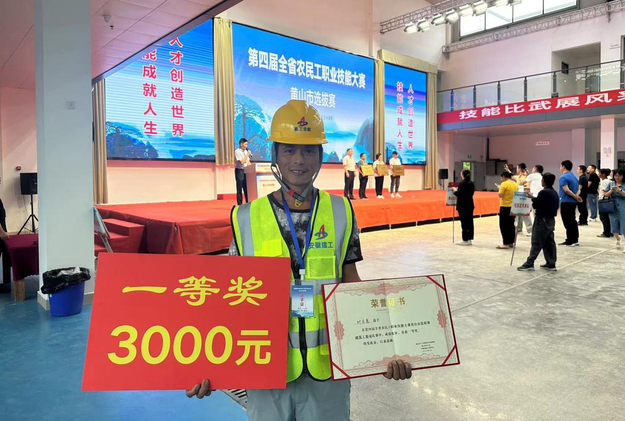 參賽人員來自黃山市三區(qū)四縣共計(jì)21支隊(duì)伍,以理論考試加實(shí)操考核的方式,層層角逐,最終我司推薦的參賽人員獲得黃山市選拔賽砌筑工賽項(xiàng)一等獎(jiǎng)、并且助力徽州區(qū)榮獲團(tuán)體一等獎(jiǎng)。