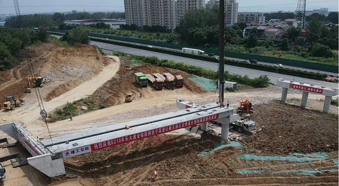 9月5日,由建工交航承建的S210豐樂大道全椒段接合寧高速公路互通立交項目首片預制箱梁順利架設完成,標志著該項目進入上部結構施工階段,為項目年底通車沖刺目標打下了良好基礎。