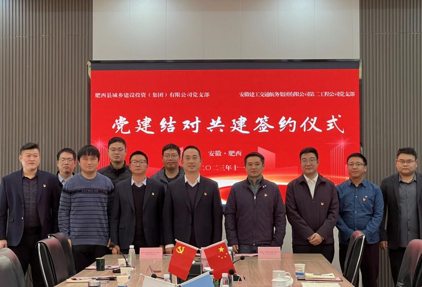 為進(jìn)一步推進(jìn)黨建與業(yè)務(wù)工作深度融合,充分發(fā)揮黨支部戰(zhàn)斗堡壘作用和黨員先鋒模范作用,探索構(gòu)建結(jié)對(duì)幫帶、雙向促進(jìn)、共同提高的黨支部黨建工作新格局。11月16日上午,肥西縣城鄉(xiāng)建設(shè)投資(集團(tuán))有限公司黨支部與建工交航第二工程公司黨支部在潭沖河家園項(xiàng)目舉辦了黨建結(jié)對(duì)共建簽約儀式。