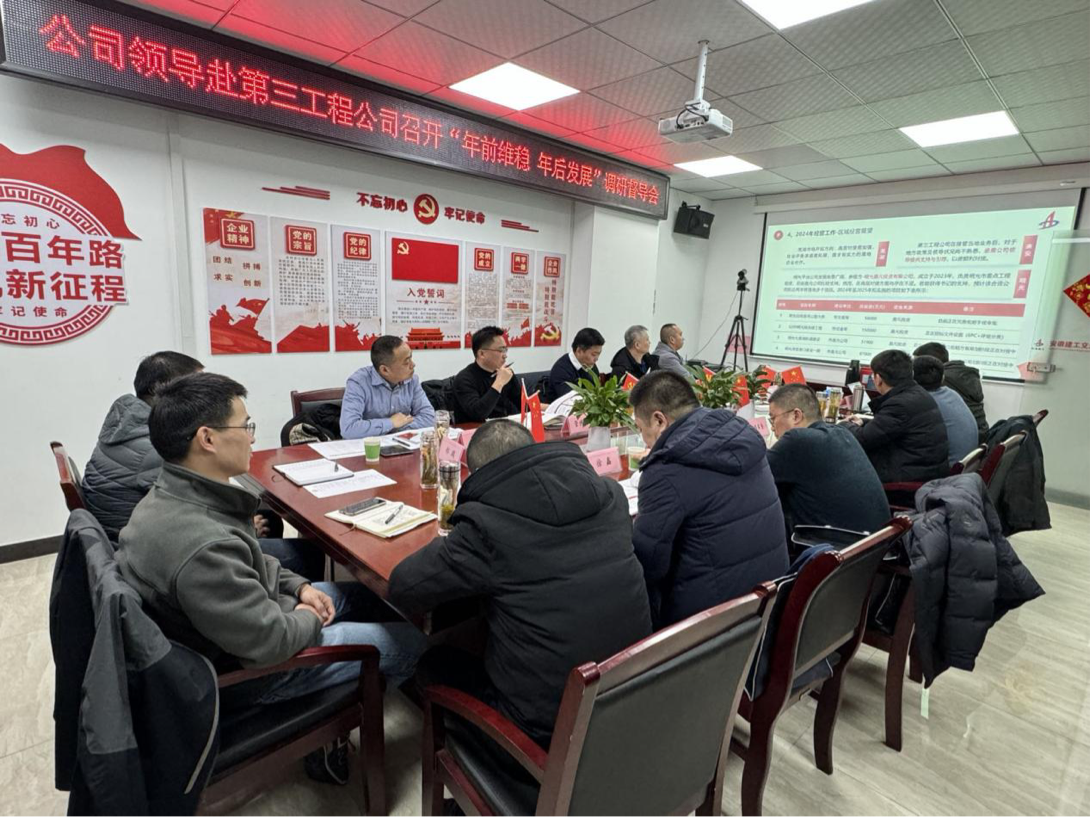 1月20日,建工交航黨委副書記、總經(jīng)理李登祥一行赴第三工程公司和第四工程公司召開“年前維穩(wěn) 年后發(fā)展”調(diào)研督導(dǎo)會(huì)。
