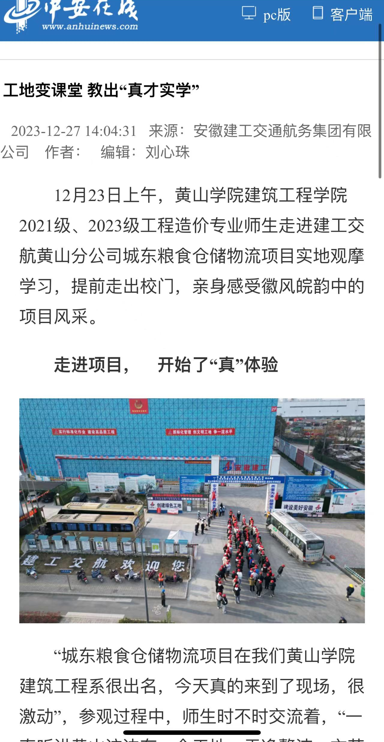 中安在線以《工地變課堂 教出“真才實學(xué)”》為題,報道本次實地觀摩學(xué)習(xí)。
