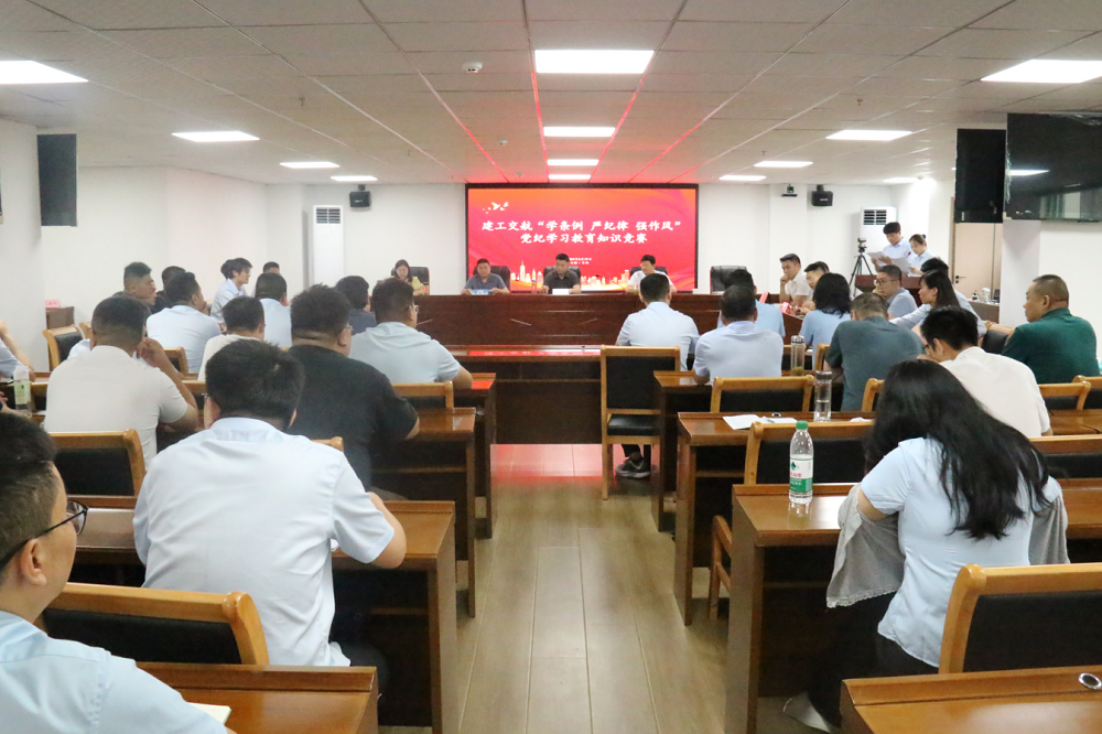 為深入推進黨紀學習教育主題活動,教育引導黨員干部做到學紀、知紀、明紀、守紀,以競賽形式檢驗學習成果,6月19日,建工交航開展“學條例 嚴紀律 強作風”黨紀學習教育知識競賽。公司黨委副書記、總經(jīng)理李登祥出席活動,黨委委員、副總經(jīng)理、工會主席王黎明致辭。公司機關(guān)黨總支書記、財務(wù)資產(chǎn)部部長李愛平、紀檢室負責人李衍、團委書記李鳳祥及各代表隊領(lǐng)隊、隊員共計50余人參與此次活動。