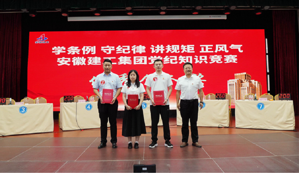 7月17日下午,由安徽建工集團(tuán)黨委主辦,安徽建工建設(shè)投資集團(tuán)黨委承辦的“學(xué)條例 守紀(jì)律 講規(guī)矩 正風(fēng)氣”黨紀(jì)知識(shí)競(jìng)賽落下帷幕,來(lái)自集團(tuán)系統(tǒng)的24支隊(duì)伍經(jīng)過(guò)預(yù)賽、決賽的激烈角逐,由水建分公司的徐鵬、朱奇和全椒建投的吳瑩組成的公司代表隊(duì)榮獲二等獎(jiǎng),其中水建分公司朱奇獲優(yōu)秀個(gè)人獎(jiǎng)。