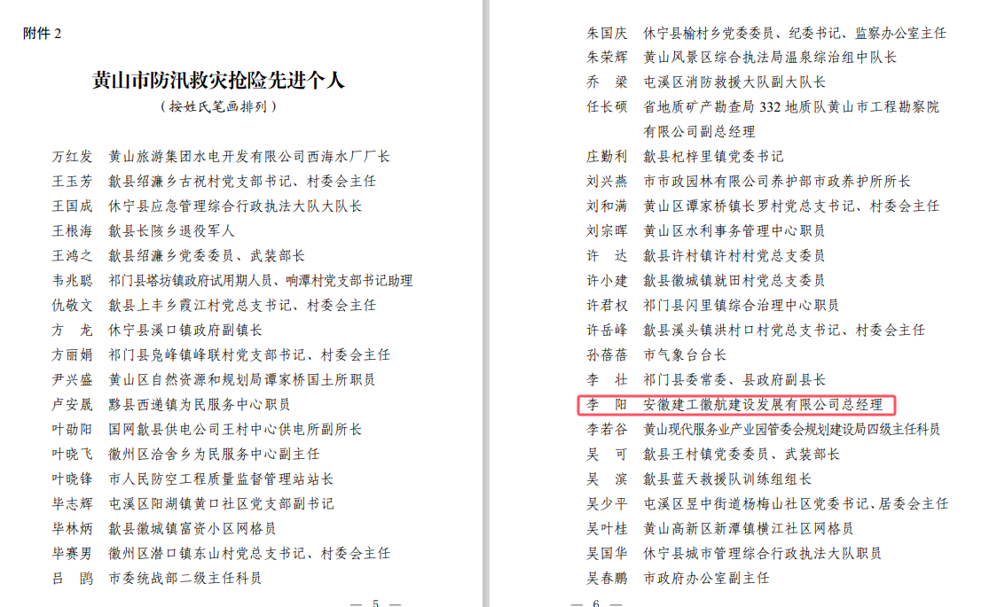 近日,黃山市委、市政府辦公室發(fā)布“關(guān)于表?yè)P(yáng)防汛救災(zāi)搶險(xiǎn)先進(jìn)集體和先進(jìn)個(gè)人的通報(bào)”,建工交航皖南分公司李陽同志作為黃山市唯一施工企業(yè)代表榮獲先進(jìn)個(gè)人表彰,安徽建工徽航建設(shè)發(fā)展有限公司是唯一一個(gè)施工企業(yè)獲此殊榮。