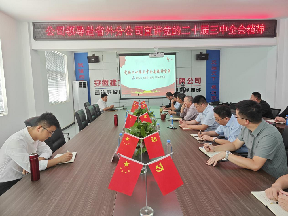為深入學習黨的二十屆三中全會精神,營造奮進新征程的良好氛圍,確保讓黨的創(chuàng)新理論在基層生根發(fā)芽,10月11日下午,公司黨委委員、副總經(jīng)理、工會主席王黎明赴省外分公司開展黨的二十屆三中全會精神宣講報告會。