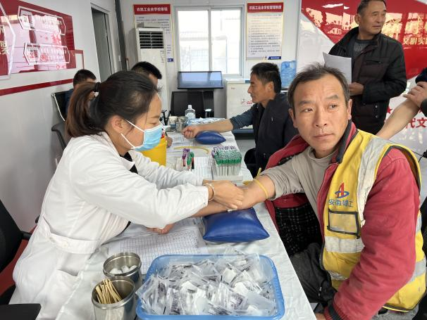 11月28日清晨,安徽省建設(shè)建材工會赴潭沖河家園項(xiàng)目開展農(nóng)民工免費(fèi)體檢活動。安徽省建設(shè)建材工會(廳文明辦)四級調(diào)研員邱亮一行出席活動。