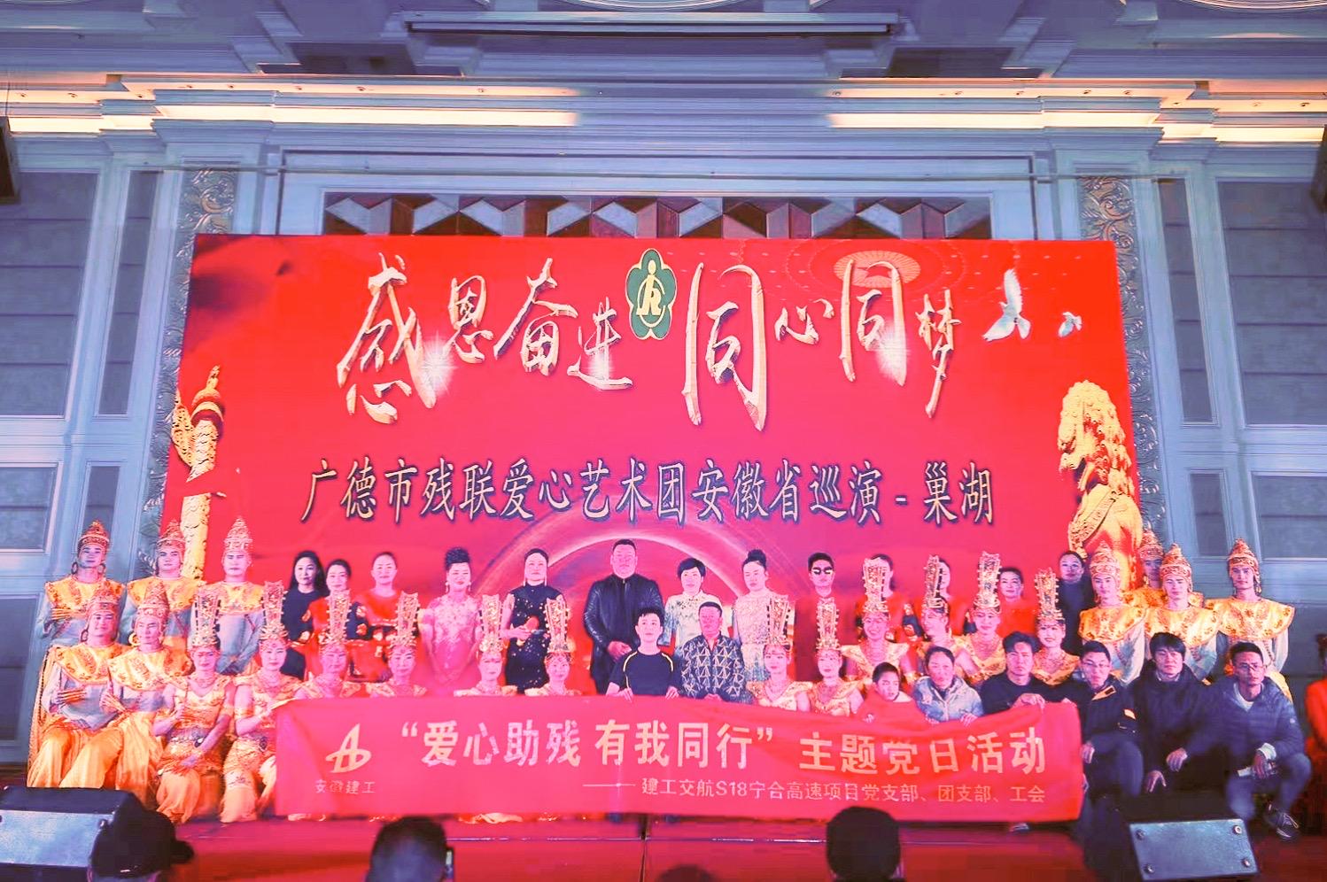 為進(jìn)一步弘揚(yáng)中華民族扶弱助殘的傳統(tǒng)美德,營(yíng)造關(guān)心幫助殘疾人等特殊群體的良好氛圍,12月14日S18寧合高速項(xiàng)目黨支部開(kāi)展“愛(ài)心助殘 有我同行”主題黨日活動(dòng),組織全體黨員集中觀看廣德市殘聯(lián)愛(ài)心藝術(shù)團(tuán)的演出。