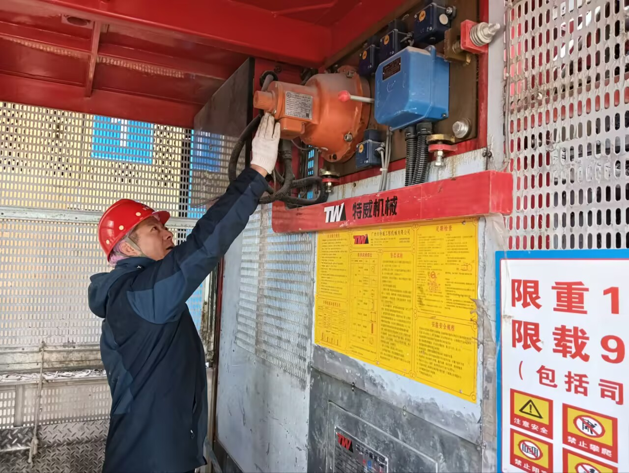 建工交航安全環(huán)保監(jiān)察部聯(lián)合設備專家組成檢查小組,深入各在建項目施工現(xiàn)場,對塔吊的基礎穩(wěn)定性、塔身垂直度、各部件連接螺栓緊固情況進行詳細檢查,同時查看維護保養(yǎng)記錄,確保設備維護保養(yǎng)工作按規(guī)定執(zhí)行。對施工升降機的防墜安全器、上下限位開關、樓層防護門等關鍵安全裝置進行逐一測試,不放過任何一個安全細節(jié)。