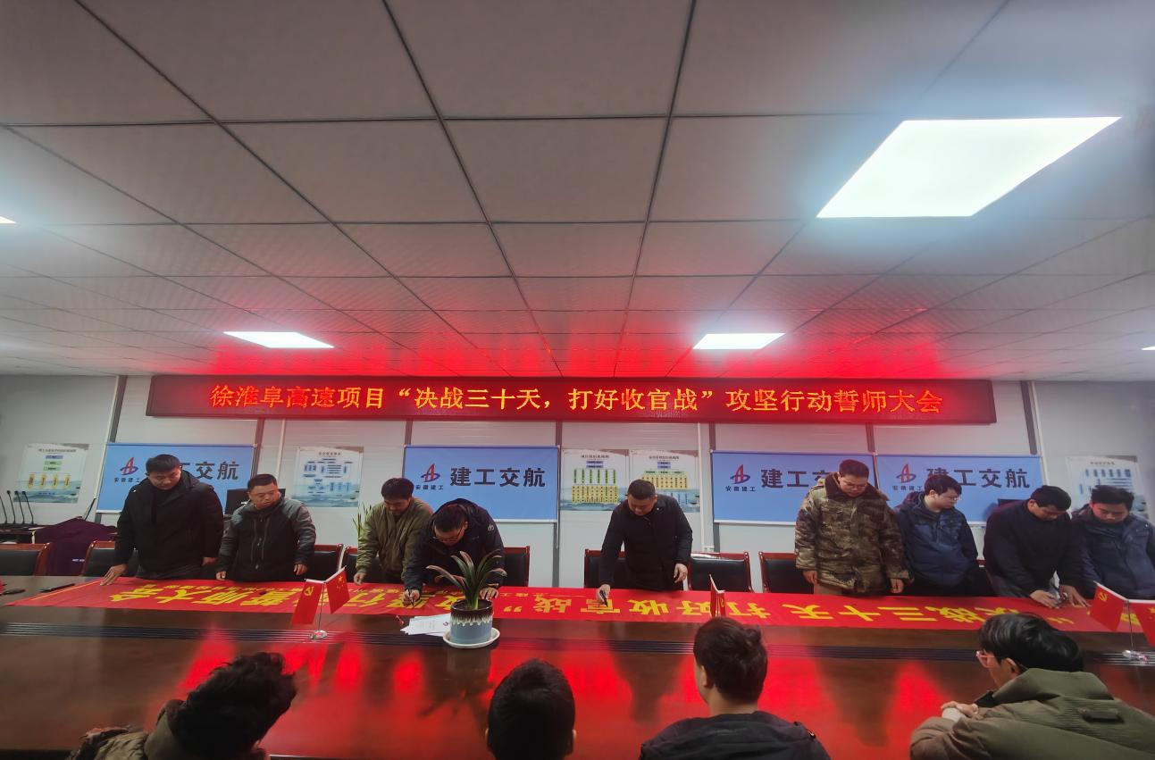12月23日,徐淮阜高速項目召開“決戰(zhàn)三十天,打好收官戰(zhàn)”誓師大會,為打贏項目收官之戰(zhàn),制定專項工作方案,列明重點工作,爭分奪秒抓進(jìn)度,計劃有序強(qiáng)落實,安全質(zhì)量不松懈,施工斷點強(qiáng)推進(jìn),責(zé)任主體我先行。