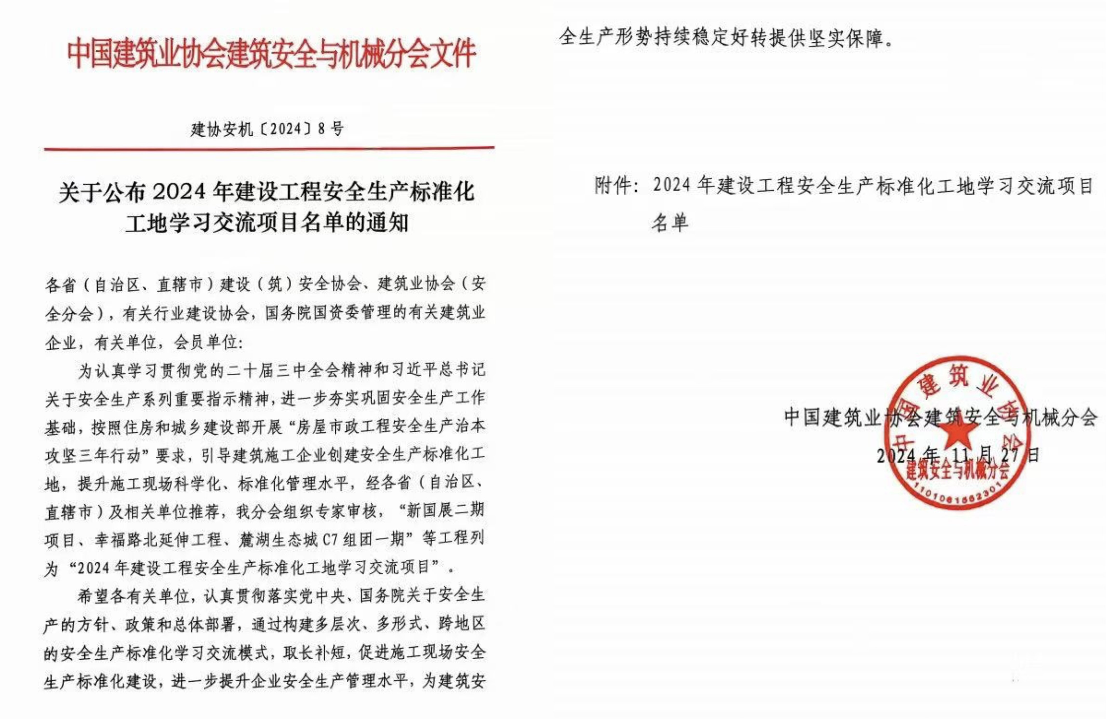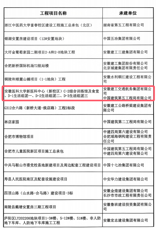 近日,中國建筑業(yè)協(xié)會建筑安全與機械分會公布了“2024年全國建設(shè)工程安全生產(chǎn)標準化工地學習交流項目”名單,由建工交航承建的安徽醫(yī)科大學新醫(yī)科中心(新校區(qū))一期一批次項目光榮上榜。