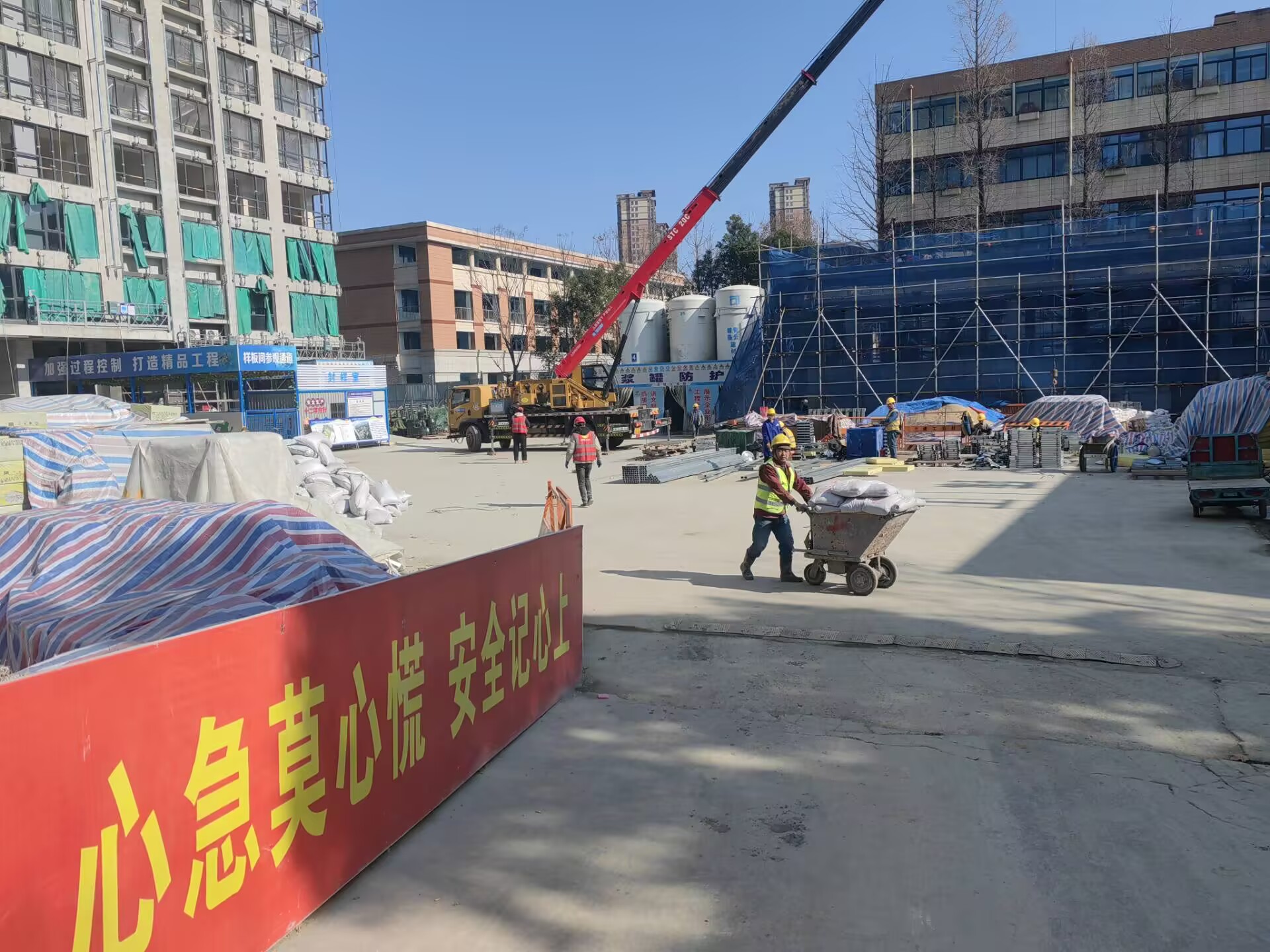 節(jié)后復(fù)工,安全是第一位的。項目部在復(fù)工前對施工現(xiàn)場進(jìn)行了拉網(wǎng)式排查,重點(diǎn)檢查了深基坑、高支模、腳手架等危險性較大的分部分項工程,對發(fā)現(xiàn)的安全隱患立即整改,確保施工安全。同時,為了保障施工進(jìn)度,項目部合理安排施工人員和機(jī)械設(shè)備,確保各項施工任務(wù)按時完成。