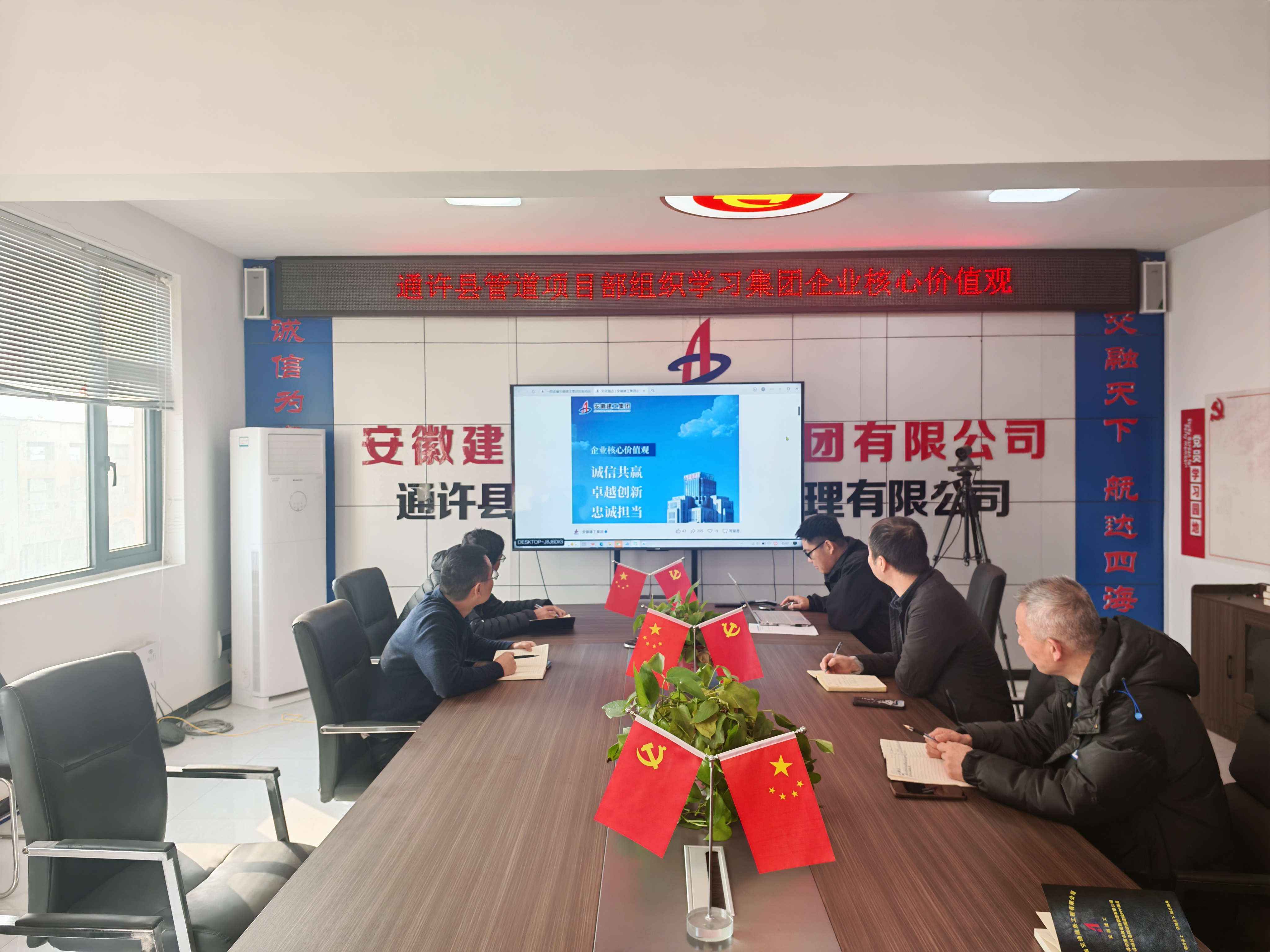 通許縣管道項(xiàng)目組織并召開了集團(tuán)核心價(jià)值觀學(xué)習(xí)宣貫專題會議,傳達(dá)學(xué)習(xí)了集團(tuán)《關(guān)于開展安徽建工集團(tuán)核心價(jià)值觀學(xué)習(xí)宣貫的通知》文件,對集團(tuán)核心價(jià)值觀“誠信共贏 卓越創(chuàng)新 忠誠擔(dān)當(dāng) 敬業(yè)清正”進(jìn)行闡釋講解。