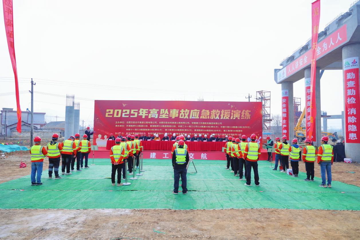 2 月 28 日上午,巢湖市夏閣鎮(zhèn) S328 省道交蕪合高速夏閣東樞紐現(xiàn)澆支架 E 匝道處,一場(chǎng)實(shí)戰(zhàn)化的高處墜落事故應(yīng)急救援演練拉開帷幕。此次演練由合肥交投合寧高速公路有限公司、合肥交投合杭高速公路有限公司、安徽建工交通航務(wù)集團(tuán)有限公司主辦,建工交航黨委委員、副總經(jīng)理邢磊,安全環(huán)保監(jiān)察部部長(zhǎng)朱云珍參加演練活動(dòng),并發(fā)表致辭與點(diǎn)評(píng)。