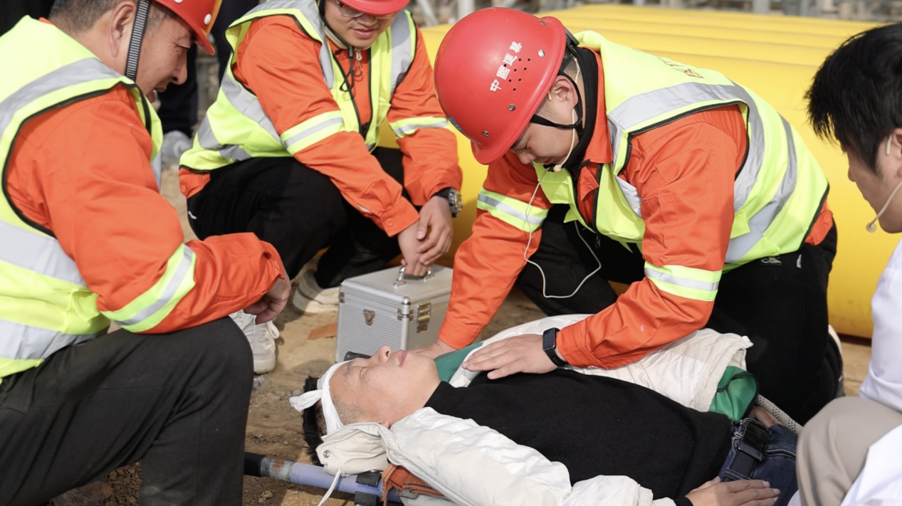 本次演練模擬了在夏閣東樞紐 E 匝道現(xiàn)澆梁支架拆除施工時(shí),一名工人因未妥善系掛安全帶,失足從支架墜落至地面受傷的場(chǎng)景,全面檢驗(yàn)應(yīng)急預(yù)案實(shí)效性。
