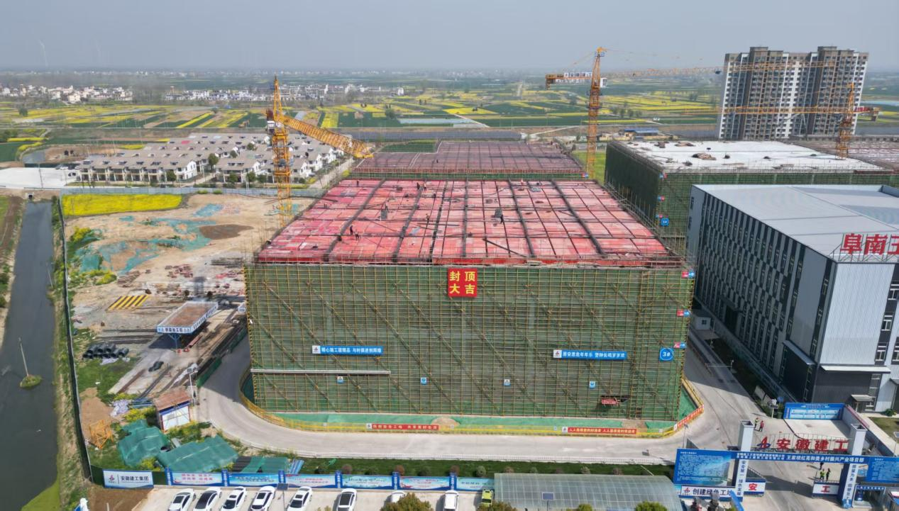 4 月 2 日,隨著最后一方混凝土澆筑完成,王家壩紅亮和美鄉(xiāng)村振興產業(yè)項目 5# 廠房主體結構順利封頂,標志著阜南縣鄉(xiāng)村振興重點工程取得階段性勝利。