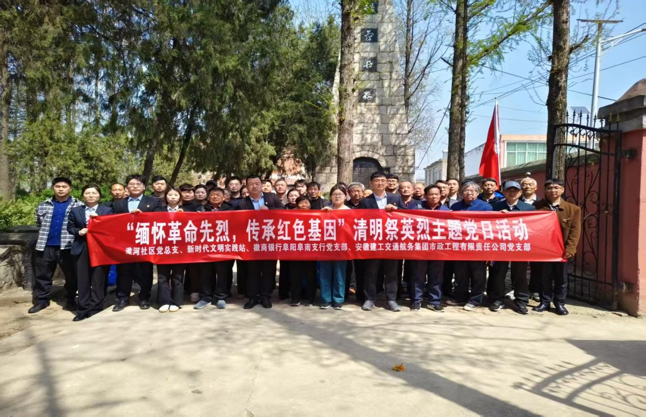近日,市政工程有限責(zé)任公司黨支部聯(lián)合淮河社區(qū)黨總支、徽商銀行阜陽阜南支行黨支部開展“緬懷革命先烈,傳承紅色基因”清明祭英烈主題黨日活動。