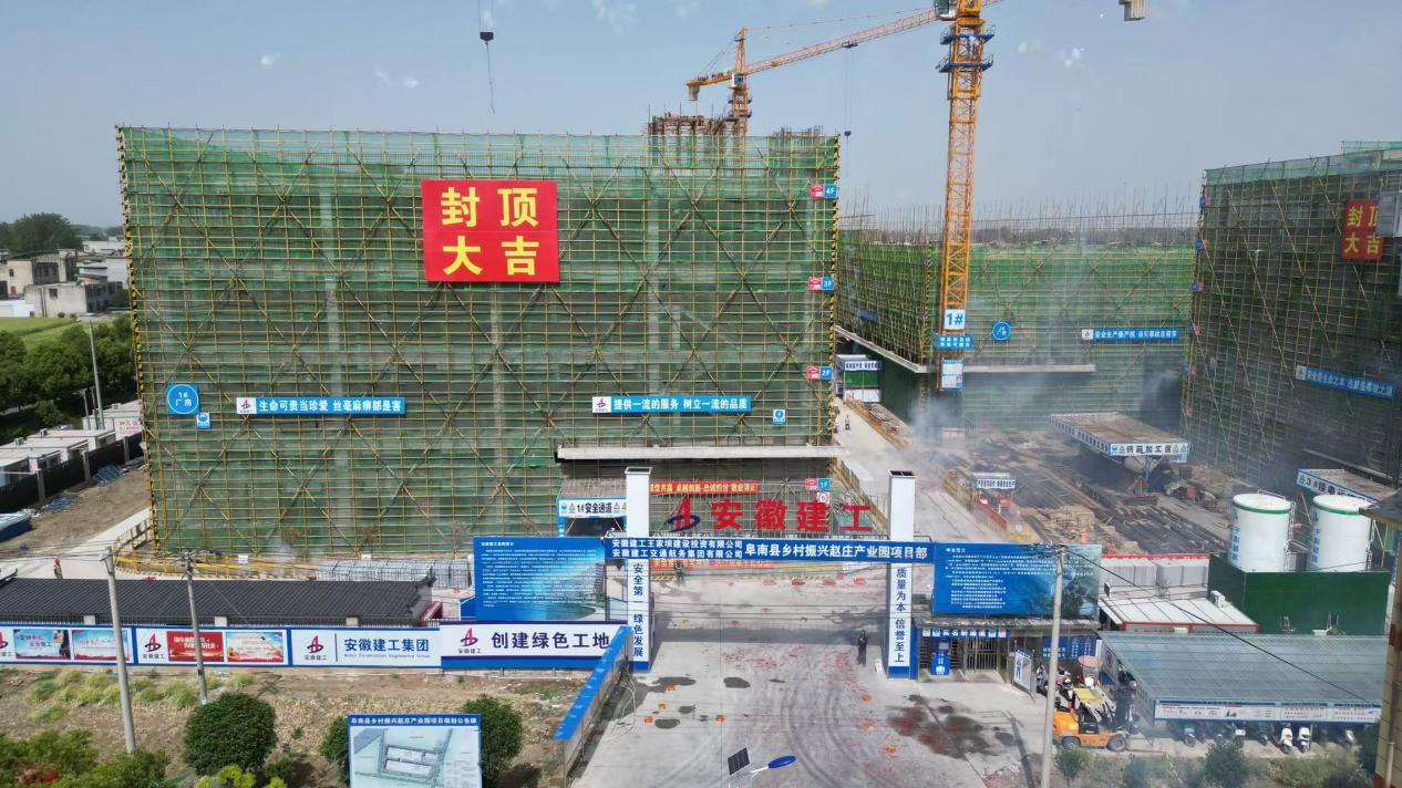 隨著最后一方混凝土澆筑完成,阜南縣鄉(xiāng)村振興趙莊產(chǎn)業(yè)園項(xiàng)目1# 廠房主體順利封頂,項(xiàng)目建設(shè)取得突破性進(jìn)展。