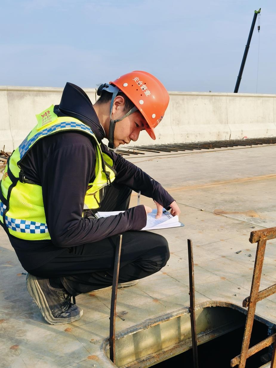 濡須港項目部工區(qū)負(fù)責(zé)人劉暢每日穿梭于作業(yè)區(qū),安全帽下的汗水順著臉頰淌進工裝,后背鹽漬圈換了一輪又一輪。他認(rèn)真把好工區(qū)技術(shù)關(guān),天再熱也不漏掉一個細(xì)節(jié),在他的嚴(yán)檢下,施工分項工程合格率達(dá)100%。